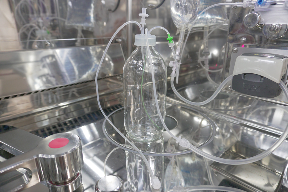 Un système de transport « invisible » pour les flacons et les seringues constitue la base du système de mouvement. Les flacons et les seringues sont placés sur la table de travail de la cellule à l’intérieur de conteneurs magnétiques et déplacés pour permettre le remplissage et le déchargement de manière séquentielle et rapide. |